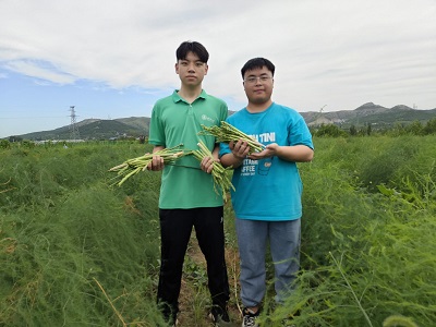 赴市中区暑期三下乡社会实践团全体成员前往土屋村“富硒芦笋”种植基地,开展除草与芦笋采摘工作,助力乡村振兴产业发展。