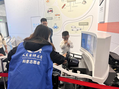 活动开始后,志愿者们分组分工协作,组织游客们有序进馆参观,在各自负责的展区进行详尽的展品讲解。引导游客亲身体验,亲手操作,以更直观、更生动的方式让民众和科技“相遇”。此外,志愿者们配合游客完成神奇的拓扑游戏、狂野的人造龙卷风等多个体验项目,中体验科学的奇妙、感受到科技的奥秘。在志愿者的帮助下,小朋友们也切身体验了驾驶火车、飞行器,体验其快感与刺激的同时,也激发了他们探索科学、追求科学的兴趣。