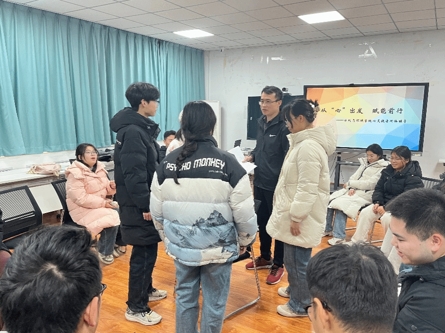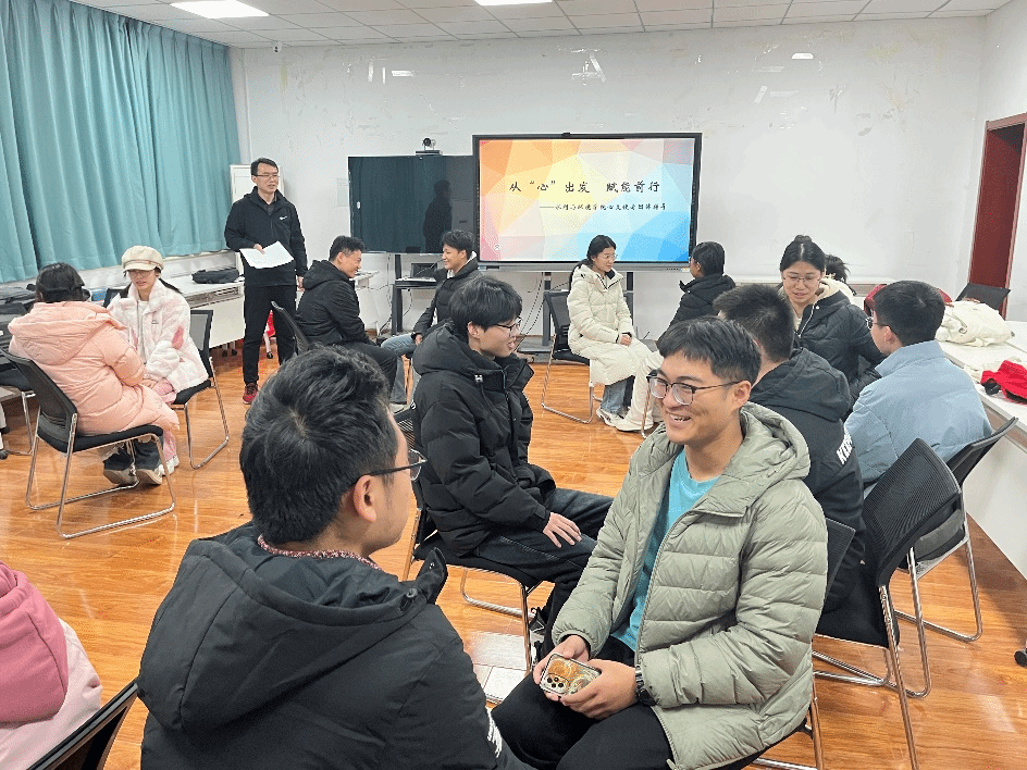 负责心理健康教育工作的张玉虎老师在九教105开展了“从‘心’出发、赋能前行”为主题的团体心理辅导,20余名心灵使者参加了团体辅导。