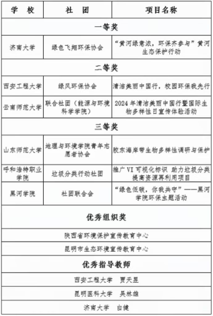 绿色飞翔环保协会凭借“‘黄河绿意浓,环保齐参与’黄河生态保护行动”项目荣膺全国唯一的一等奖,指导教师白健被授予优秀指导教师荣誉称号。