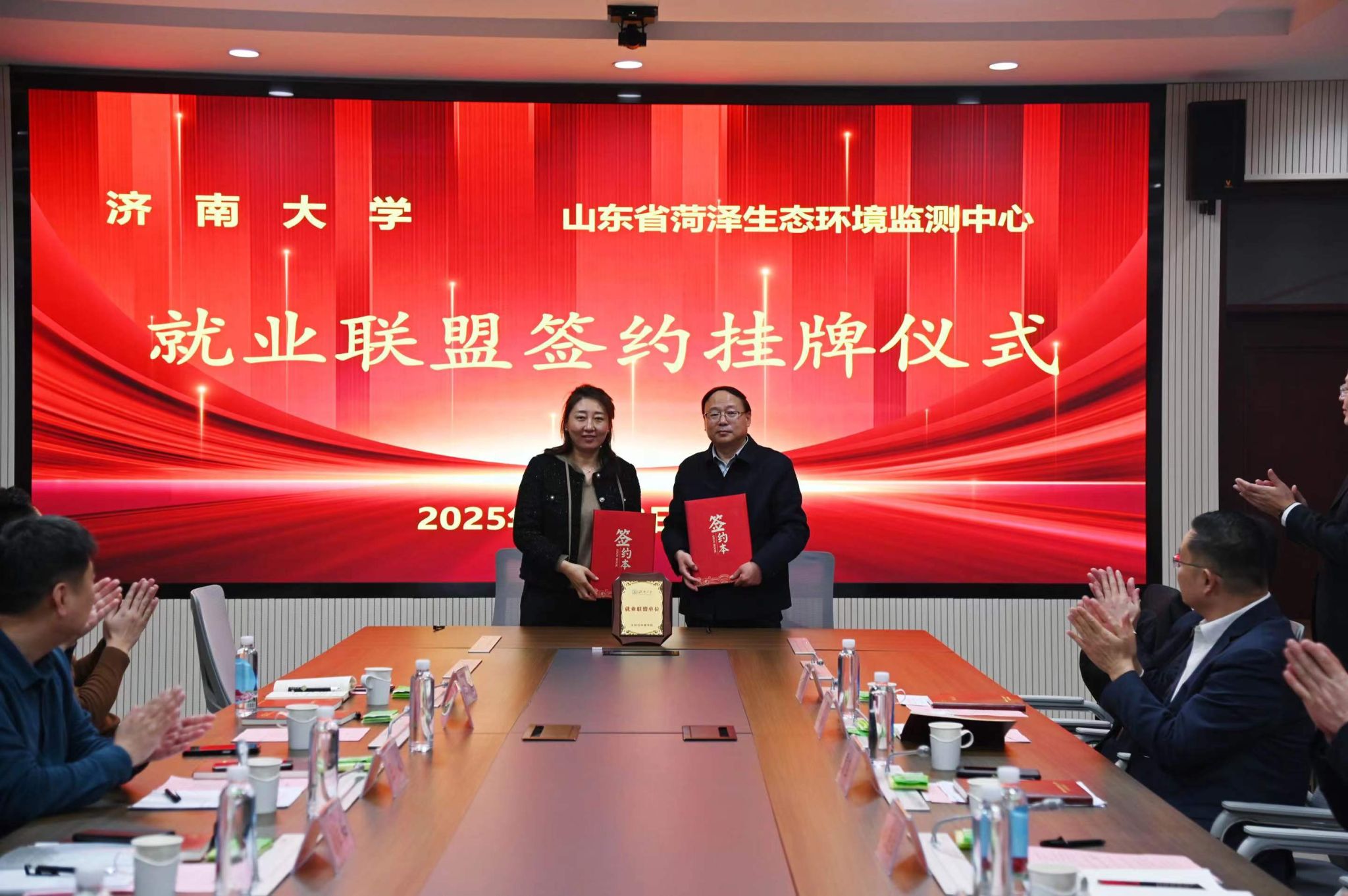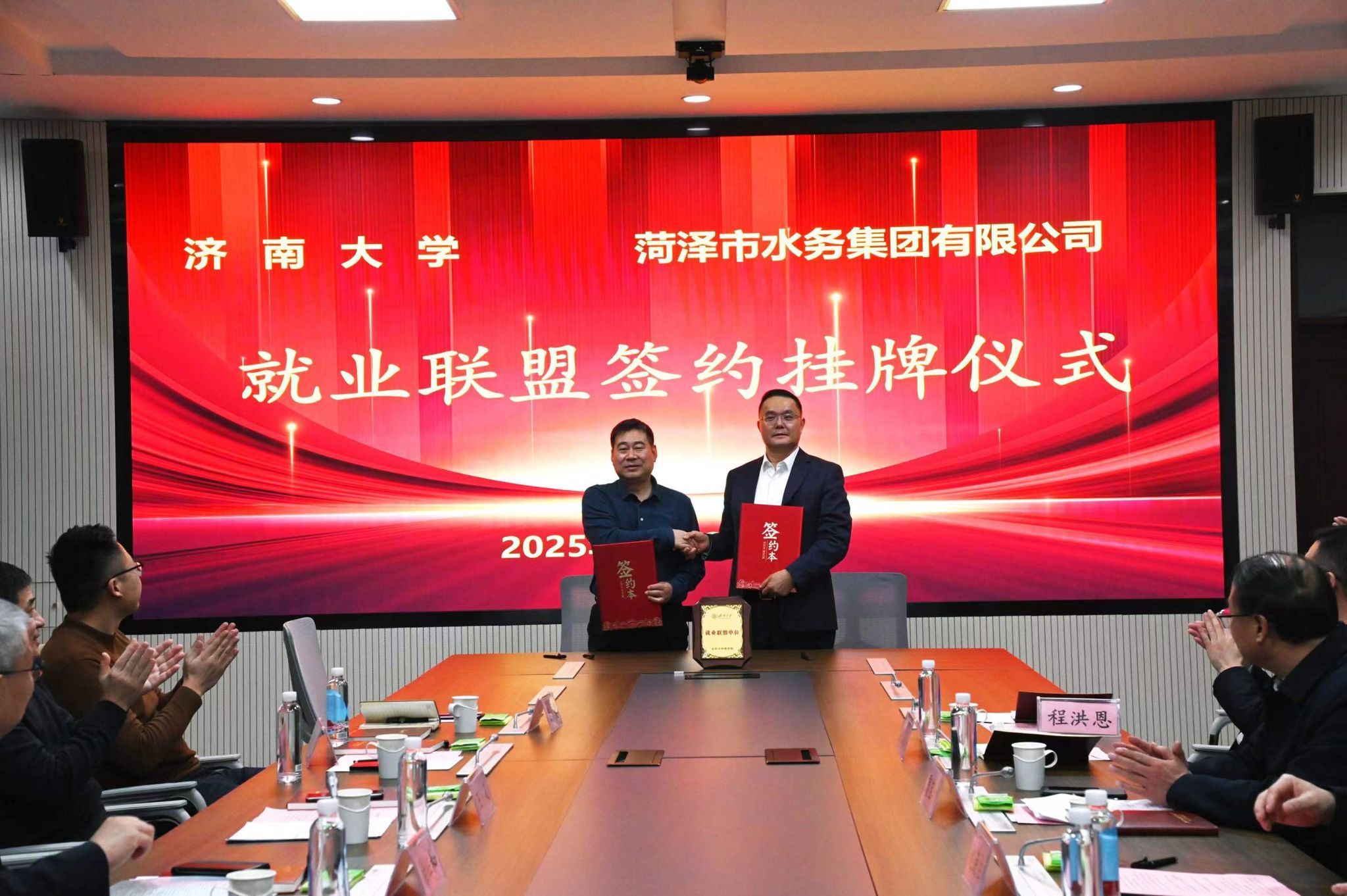 副书记副院长张良红与菏泽市水务集团有限公司常务副总经理李琦分别签署就业联盟协议。