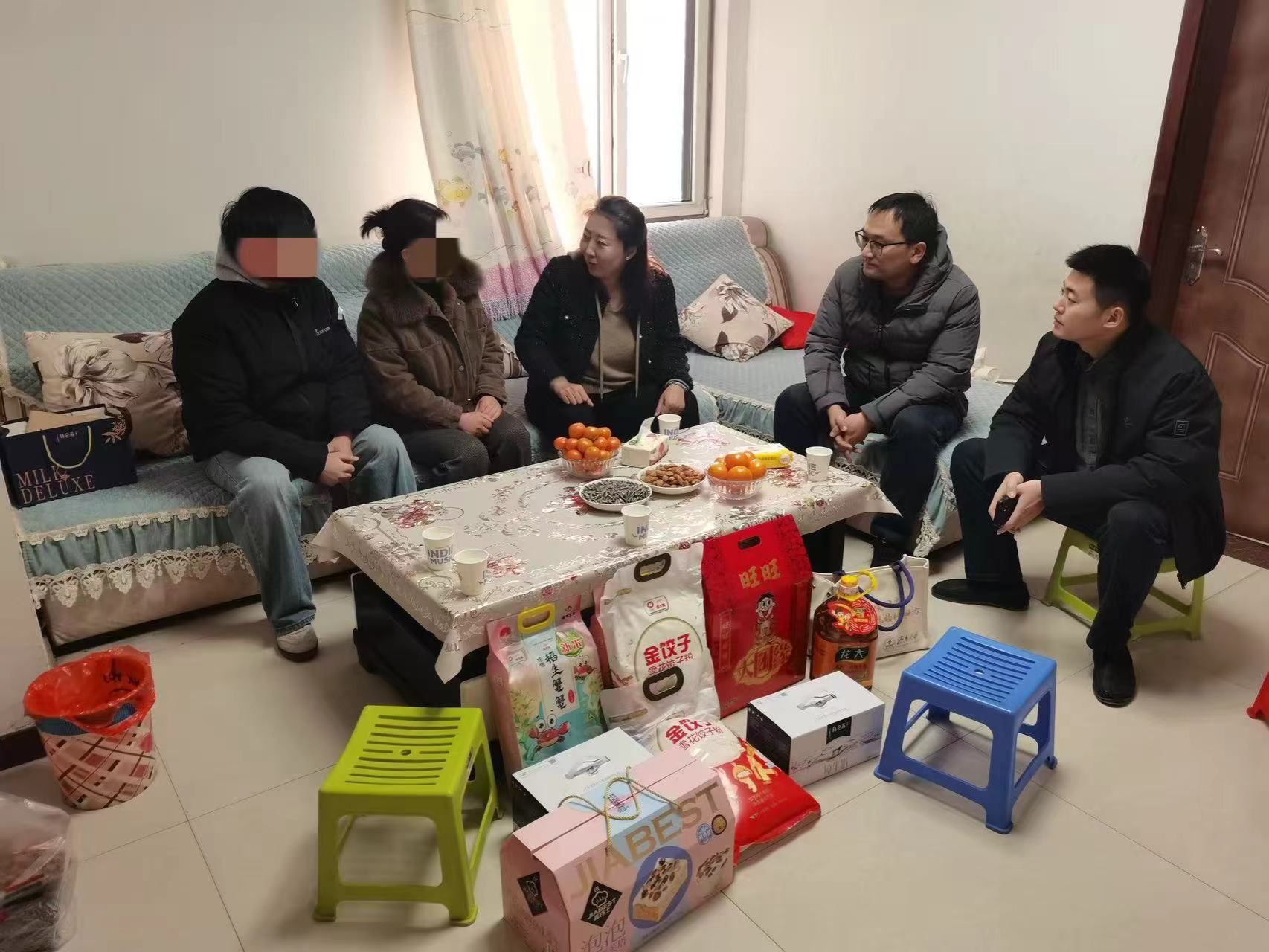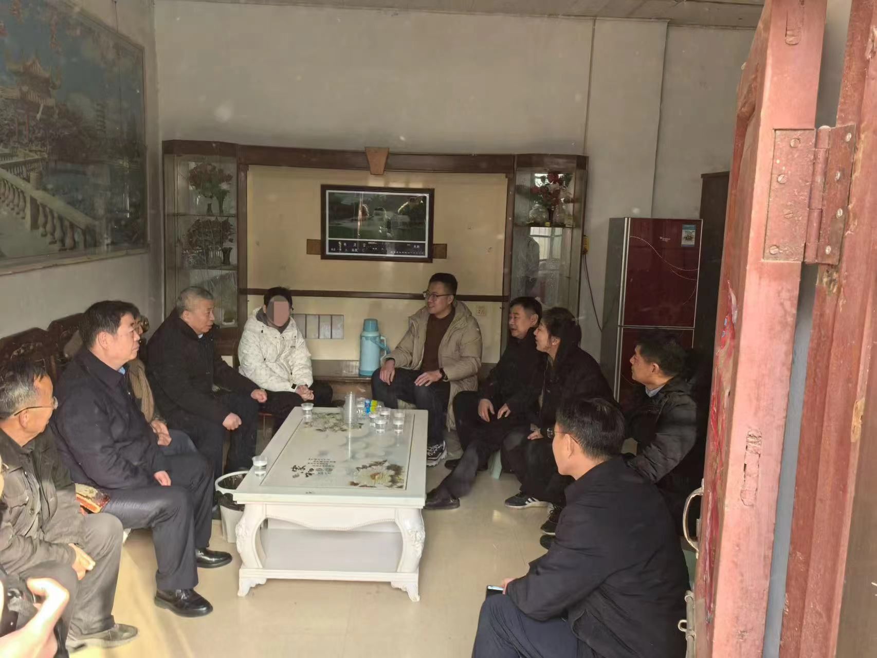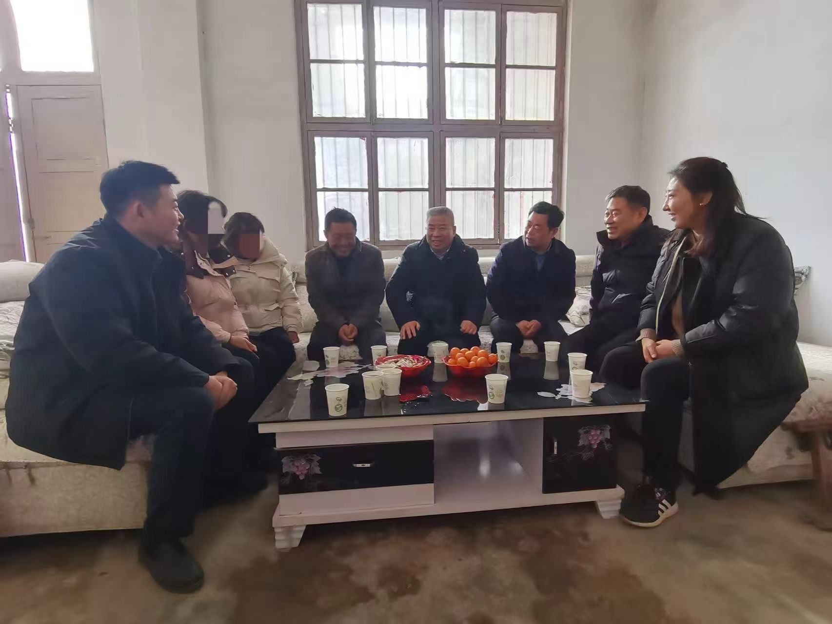 徐征和一行首先来到2024级程同学家中。见到程同学,徐征和笑意盈盈,关切询问他入学后的适应情况,勉励学生珍惜大学时光,规划好大学生涯,好好学习,全面发展。赵连柱则叮嘱程同学,假期在家学习之余,多帮父亲分担家务,为家庭减轻些生活压力。最后,一行人向学生及家长送上新年的祝福。