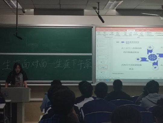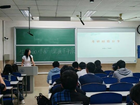 于第一教学楼205举办了“生涯面对面”经验分享沙龙活动。本次活动由2025届四位优秀毕业生赵宇航、丁姝羽、怀兰坤、马润琪担任主讲,他们分别就保研及考研等内容进行经验分享。