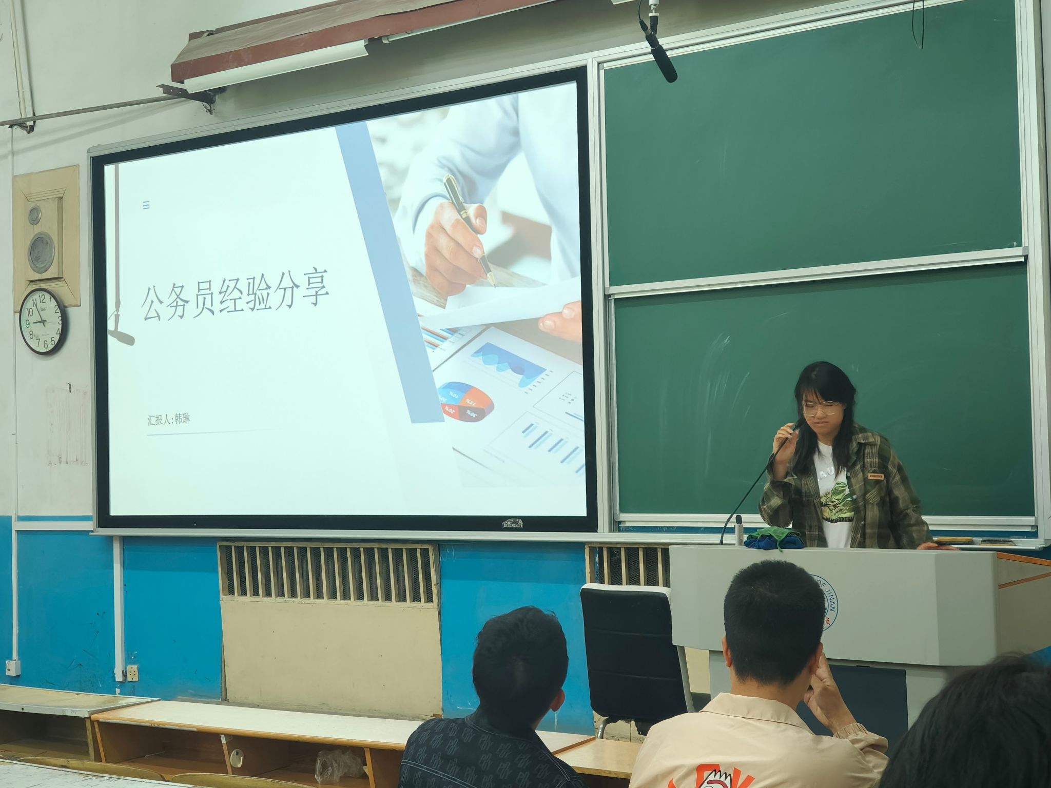 举办“生涯面对面——优秀学子考公经验分享”讲座,邀请了成功考取公务员的2025届毕业生李政通,孙泉涌和韩琳,在梅花馆合05教室,分享上岸山东省公务员、国家公务员、山东省定向选调生的经验。