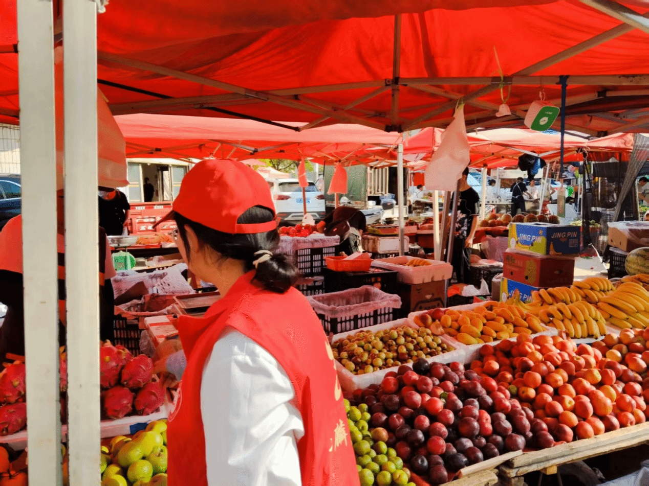 为进一步了解乡村经济发展和村民生活状况,团队成员与村委会工作人员来到乡村集市,对村民摊位进行调查。团队成员与摊主亲切交流,询问商品来源、销售情况以及经营中遇到的困难等,团队成员不仅收集到了第一手的基层经济数据,更感受到了村民们勤劳质朴的生活态度。针对部分摊主提出的问题,团队成员认真记录并及时反馈给村委会,助力问题解决。