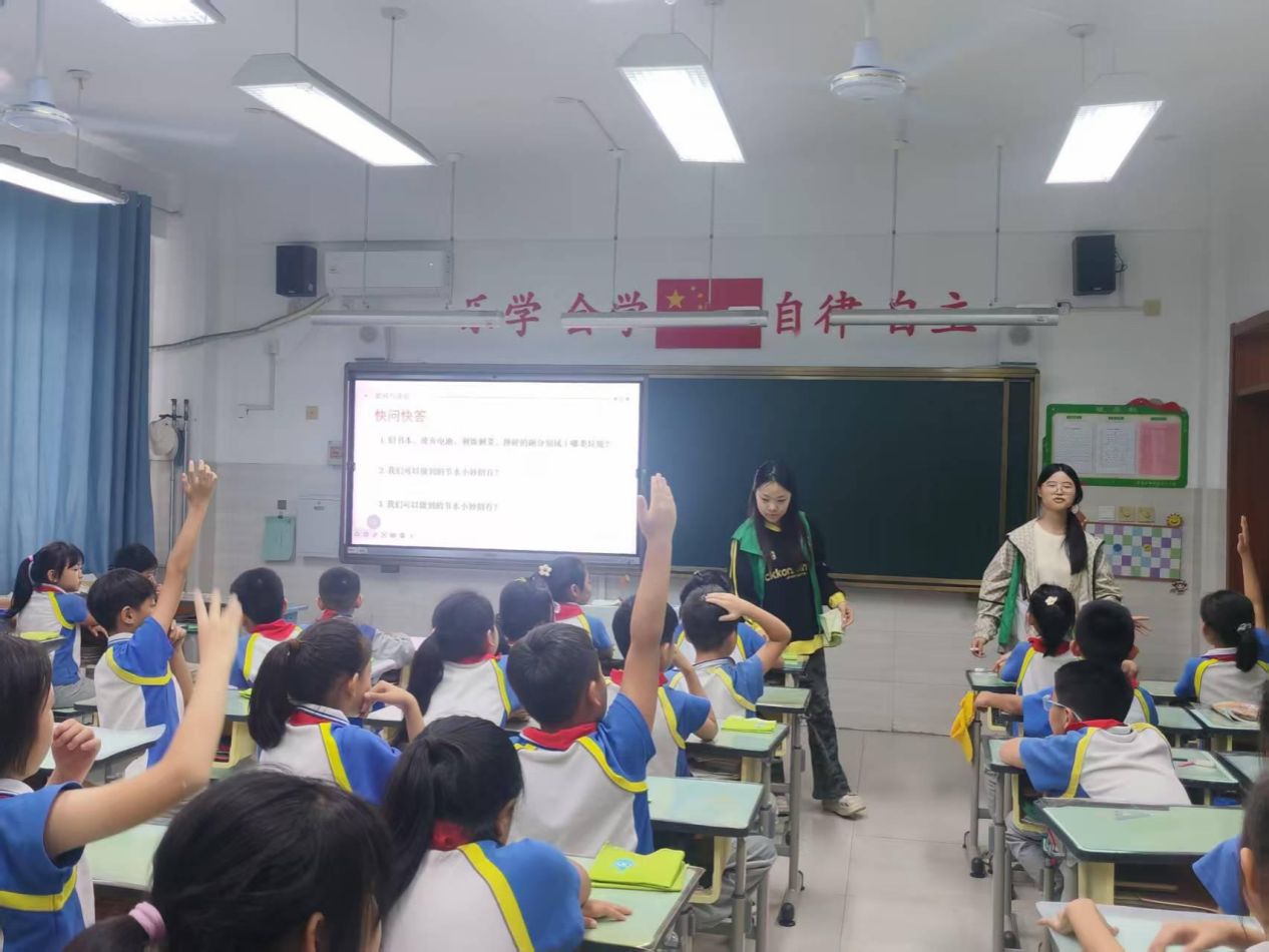 要护草捡垃圾、关投影仪节电;在家里帮爸妈节水浇花、拔电器插头;在社区画环保海报、参与植树。不少同学当场表示,要回家和爸妈一起践行“绿色出行”,还要把节水妙招告诉邻居。