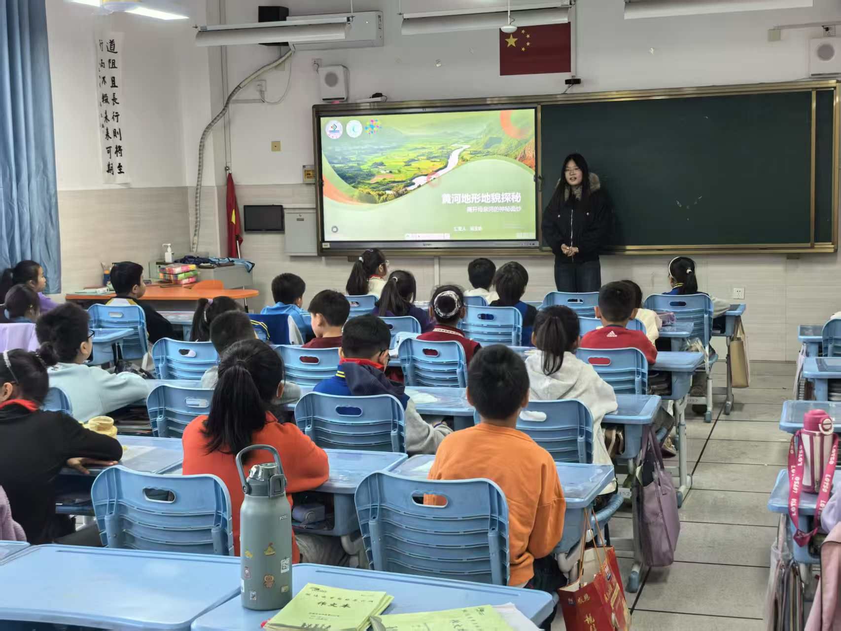 活动伊始,主讲人吴玉娇以黄河地形高清示意图为引,搭配分段景观视频,用生动通俗的语言层层递进地科普黄河地理知识——从上游的雄奇峡谷到下游的广袤平原,将黄河上、中、下游的地形特征、水文水系特点及源头位置等核心知识点清晰拆解。期间穿插的“地形特征抢答”“河段图片匹配”等互动游戏,不仅点燃了同学们的参与热情,更让大家在踊跃作答中扎实巩固了所学内容,实现“学中玩、玩中学”。