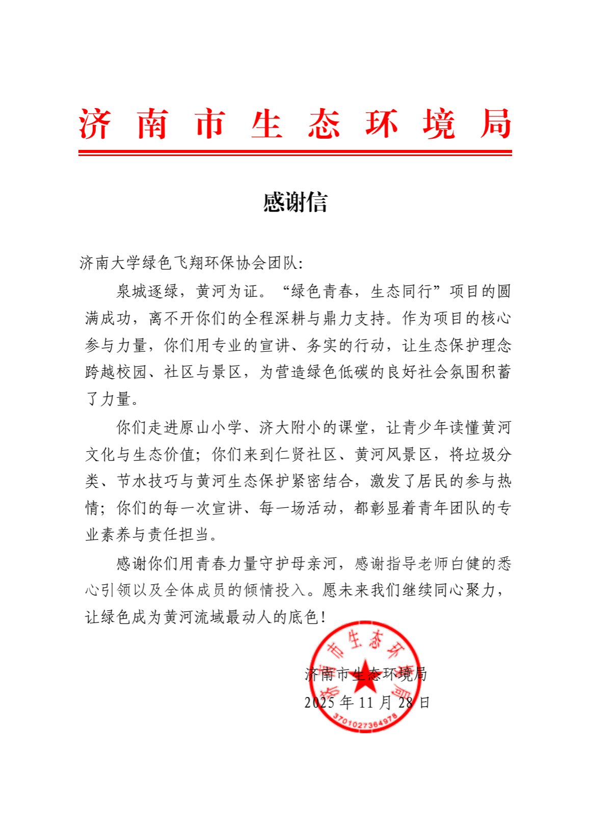 本次培训为协会带回丰富资料与实践经验。后续,协会将开展专题分享会,组织全体成员系统学习培训内容,并将所学转化为校园及周边生态保护实践行动。未来,绿色飞翔环保协会将以此次培训为契机,让青春力量在黄河生态保护与校园环保实践中持续绽放,践行绿色发展理念,推动环保志愿服务在校园落地生根。