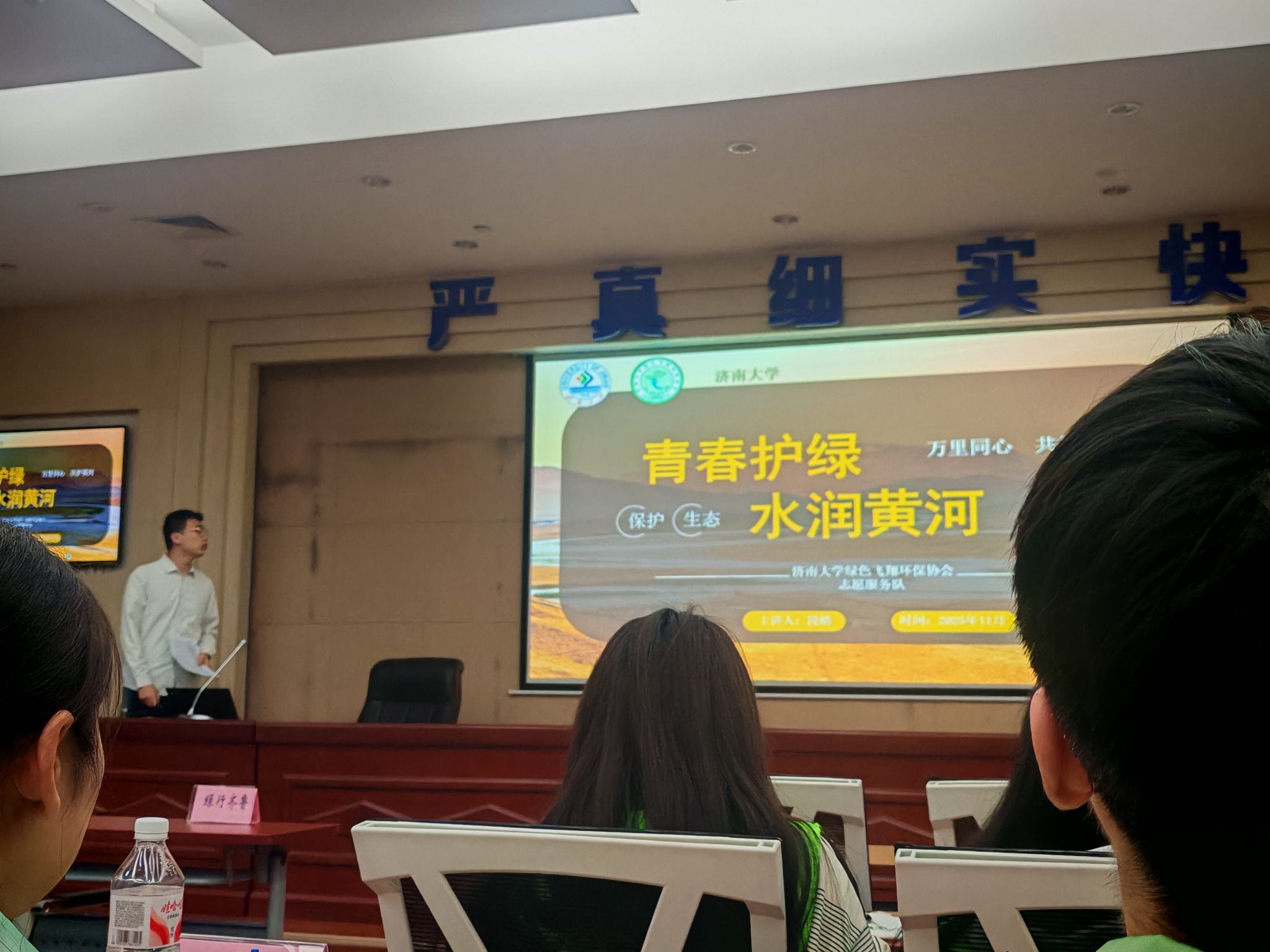 活动现场气氛热烈。伊始,济南市生态环境局下发感谢信,相关领导登台致辞,庄重肯定了黄河生态保护志愿服务的社会价值,台下志愿者专注聆听、不时点头回应。绿行齐鲁项目负责人牛晓玉主持破冰活动,志愿者围坐成圈积极互动,欢声笑语中拉近了彼此距离。随后播放的项目宣传片里,黄河岸边的生态保护实践场景生动感人,不少志愿者驻足凝视、陷入深思。