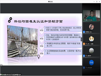 班委职能分工》文件精神,加强班级凝聚力、向心力,细化班委职能分工和学生干部队伍建设,提升各班委的综合素质,本科2020级特开展班级工作述职会议。本次述职大会于2021年2月9日线上进行,巴黎人娱乐城