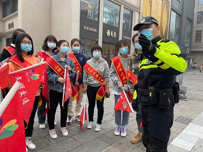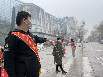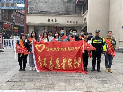 环抱碧水青年志愿者协会3月27日在芙蓉街周边道路组织参加交通指挥志愿公益活动,齐鲁志愿者协会外联部张秀华同志来到现场指挥,志愿者们积极参与此次活动。