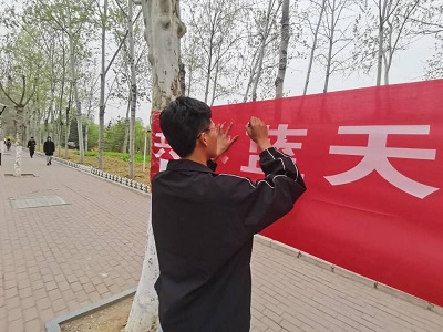 在八食堂的广场上,来来往往的同学驻足在“世界水日”条幅和宣传展板前,听志愿者讲解世界水日相关知识、保护水资源的重要性和紧迫性以及节水、护水小常识,志愿者们现场呼吁广大同学响应“世界水日”号召,从自身做起,珍惜水,爱护水,做水资源的守护者。志愿者们还对驻足观看的同学进行了现场采访,了解同学们对“世界水日”相关知识和节水护水常识的认识。在志愿者的号召下,同学们纷纷拿起笔,在“共沐蓝天碧水,共享绿树鲜花”的条幅上庄严地签下自己的名字。