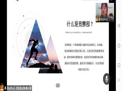 会议伊始,学术部部长刘子毓详细为大家解释了什么是科创、参与科创的益处以及如何参与科创。同时,她也为大家简单地介绍了有关科研立项、国家大学生创新创业训练计划和科技创新大赛的相关知识。接着,竞赛部部长王耀羚则结合自身竞赛经历,详细介绍有关挑战杯、创青春、互联网+及全国大学生数学建模等相关比赛,一度将会议气氛推向高潮。会议最后,由学生会主席王翘楚、张晨奇两位同学共同答疑并总结本次会议。