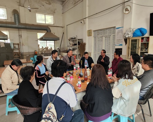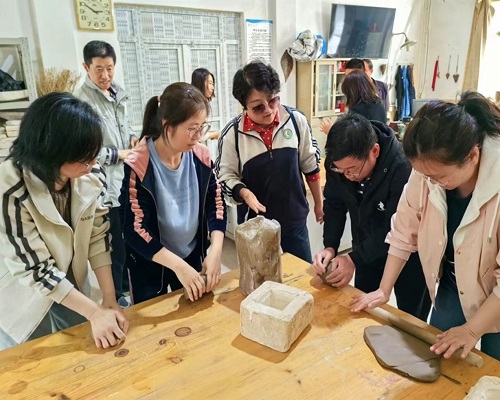 党支部的人员组成及党支部活动情况,并详细介绍了陶艺制作的相关课程安排和学生实习实训情况。为更好地感悟“精工精神”,到场人员在高绍平老师的指导下,了解了陶艺制作的要点、主要流程和注意事项,观看了部分优秀的陶艺作品,并自己动手,参与陶艺制作,身临其境感受精工细作的工匠精神。