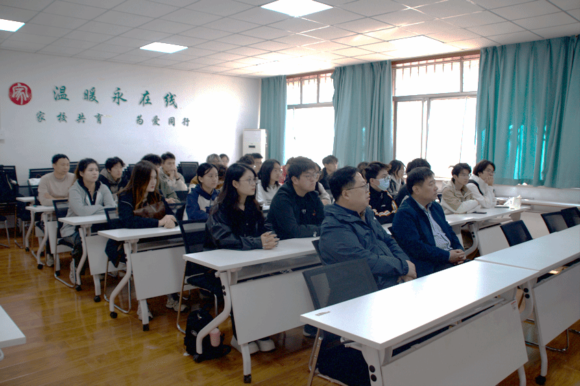 院长王仲鹏在9教105室与师生代表一同收看了网络直播。