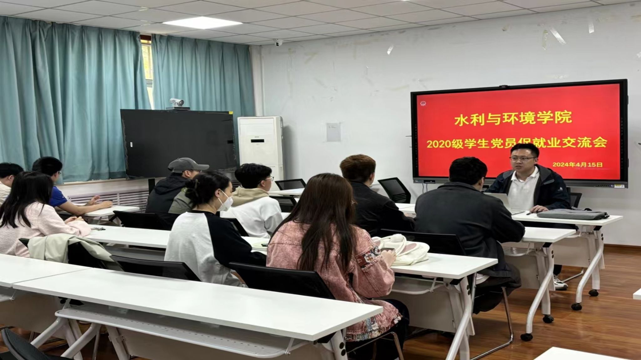 在九教105会议室召开2020级毕业生党员促就业交流会,旨在通过毕业生党员的先锋模范带头作用,促进即将毕业学生的就业工作。部分学生党员代表参加,会议由2020级本科生辅导员白健主持。