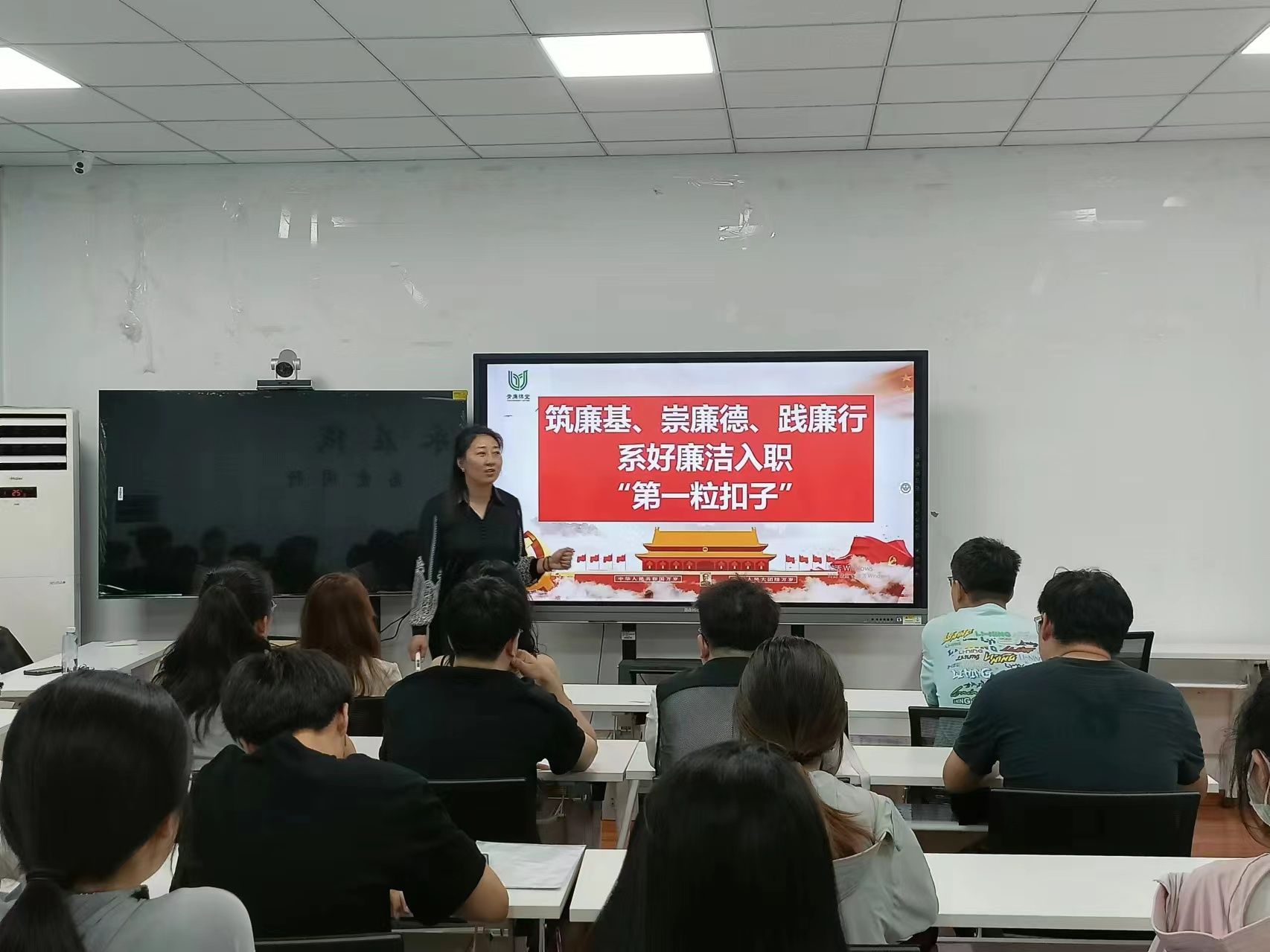 张良红老师深入剖析干部违纪违法典型案例,教育引导毕业生要始终时刻牢记习近平总书记殷切嘱托,深刻认识违纪违法的危害,提前筑牢拒腐防变防线,倡议全体毕业生扣好廉洁从业“第一粒扣子”,始终坚定信念、不忘初心,严守纪律规矩,守好底线,做到自重、自省、自警、自励。