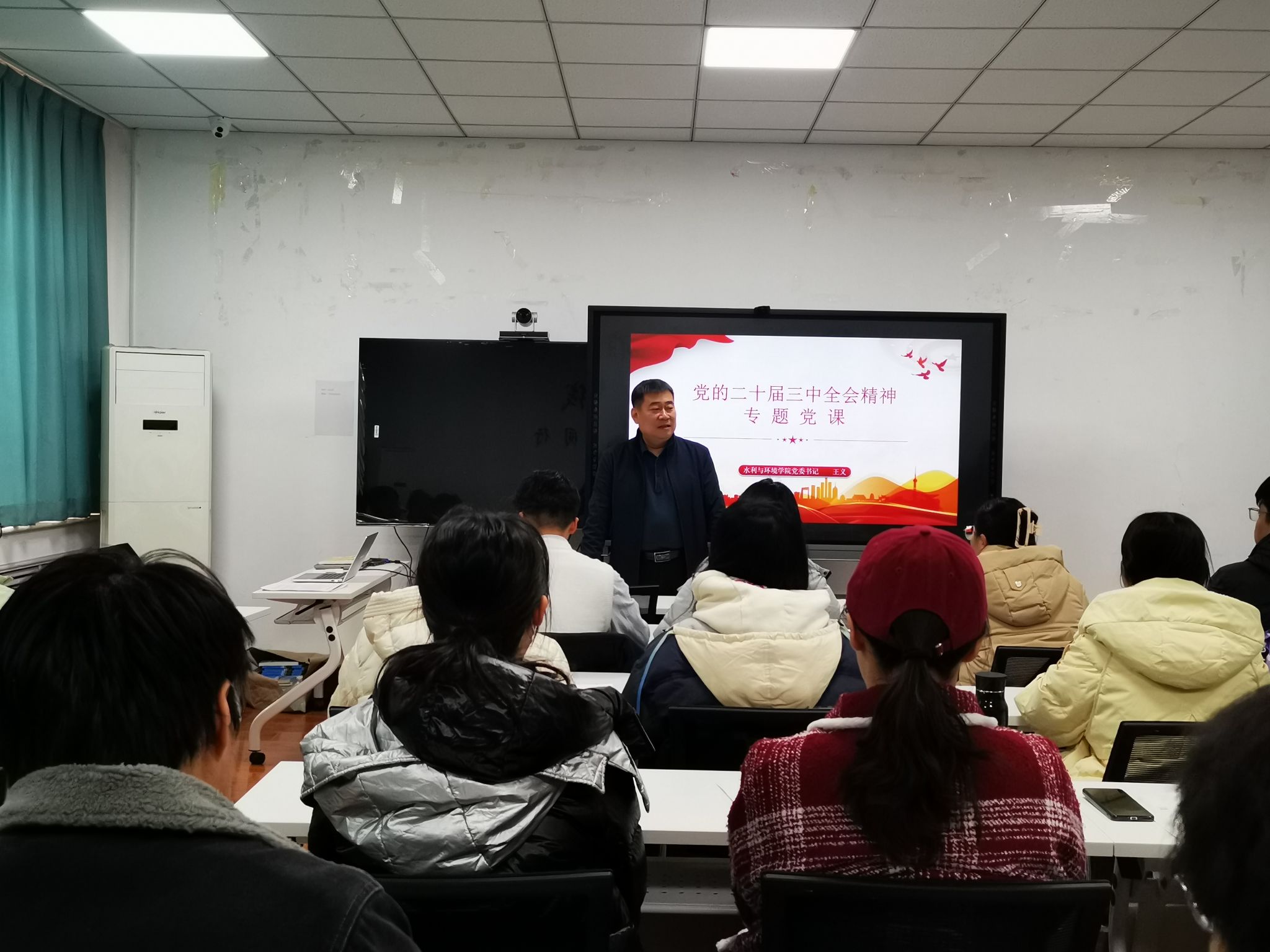 党委书记王义在九教105讲授党的二十届三中全会精神专题党课,部分学生党员、入党积极分子听取了报告。
