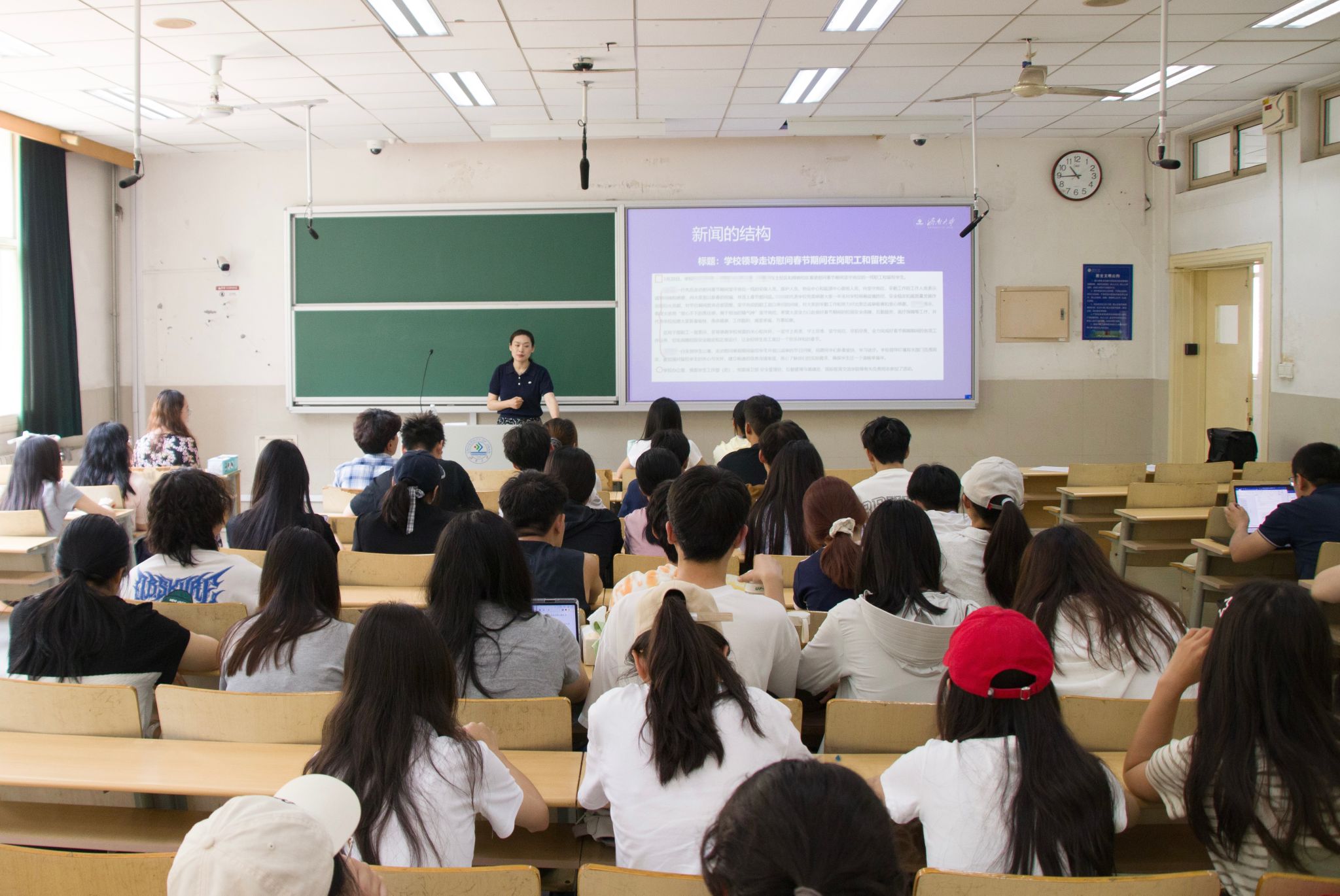 宣传工作实际出发,围绕新闻文稿撰写、新闻摄影技巧,生动讲授了宣传工作内在规律和方式方法。她指出,时效性、真实性和价值性是新闻写作的三大基石,结合典型新闻案例,深入浅出地阐释新闻写作的要点,希望大家在实践中不断打磨提升新闻写作技能和摄影技巧。在培训最后的互动环节,与会师生就平时新闻写作遇到的问题和刘孟頔进行深入交流。