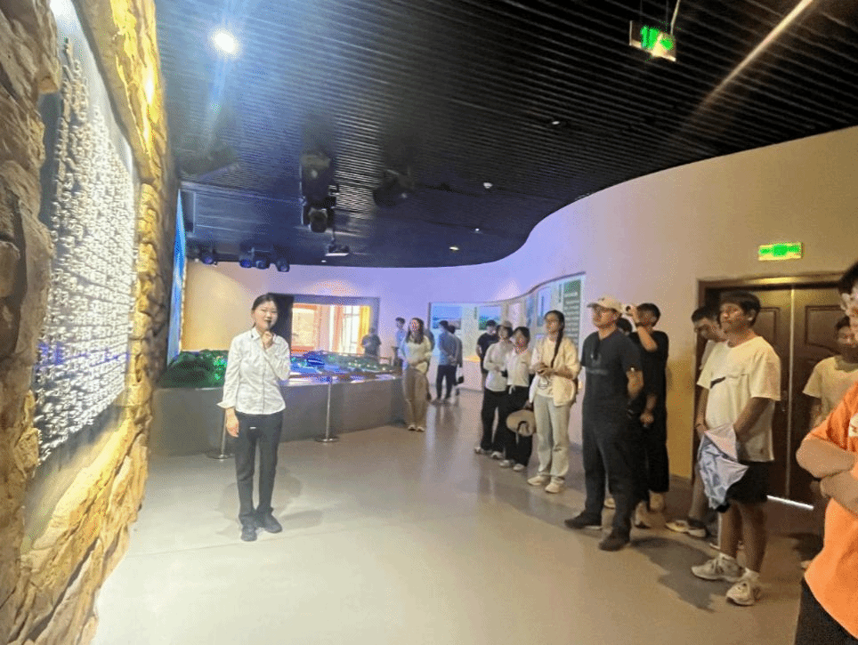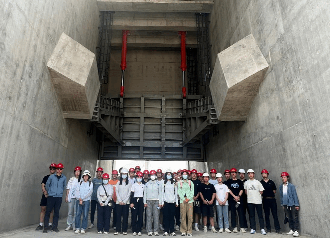 中午,位山闸施工项目部专门在工地食堂为我们全体同学准备了丰盛的午餐,短暂的休息后,同学们乘车前往泰安市东平石洼分洪闸。石洼分洪闸是保障黄河下游山东段防洪安全的一座重要工程,有49孔闸门,当黄河发生特大洪水时,负责向东平湖滞洪区分洪,以保证济南及沿线地区的安全。工程师通过展板、视频详细介绍了东平湖的防洪作用、分洪闸的结构、功能及其在黄河防洪中的核心地位,进入机房参观了卷扬式启闭机以及水闸管理和运行的方法。进一步加深了同学们对水利工程重要性的认识与理解。随后,实习团队又前往了戴村坝,这座有600多年历史、号称“运河之心”的古老水利工程,它在运河补水、防洪灌溉和生态保护方面均发挥着重要作用。通过参观戴村坝现场和水利博物馆,同学们深入了解了戴村坝的建造历史和建造方法,对古代劳动人民非凡的智慧和高超的建造技术充满好奇和惊叹,同时也对水利工程的综合效益和重要意义有了更为深刻的认识。