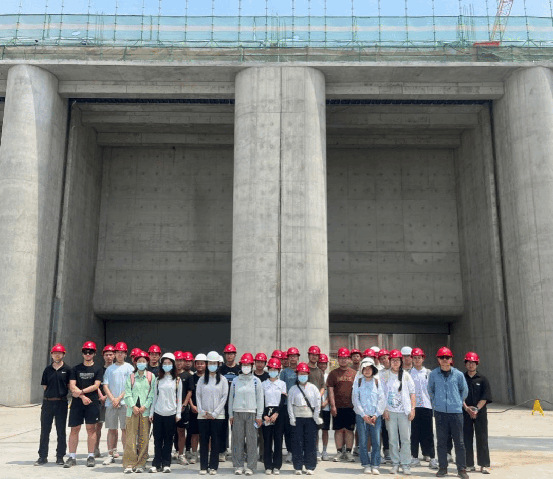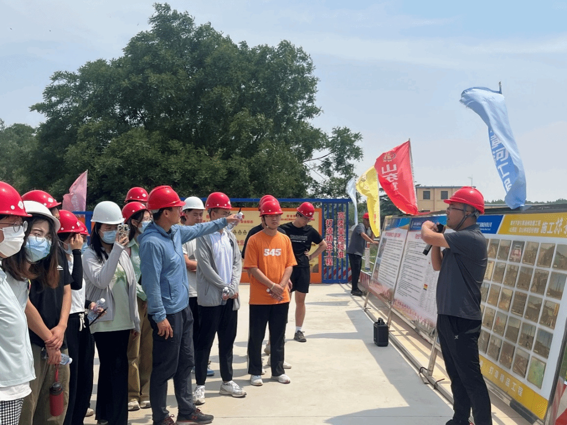 上午,实习团队先后抵达陶城铺闸和位山闸两个工程的施工工地,两座引水闸正在紧张的施工当中,其中位山闸是山东省最大的引黄灌区的渠首工程,同时担负向天津、河北调水的重任。现场工程师通过展板详细地介绍了工程的建设背景、结构特点、建设过程以及在农业灌溉、水资源利用方面发挥的重要作用。然后带领同学们进入工地现场,近距离观察闸首、闸墩、闸门、消力池等,了解工程的具体细节和施工方法,同学们全神贯注地聆听,并基于所学知识积极提出问题,与工程师展开深入交流。黄老师结合课程的学习内容一边参观一边讲解,解答同学们的问题和疑惑。整个参观过程,同学们整齐有序,有很大收获。